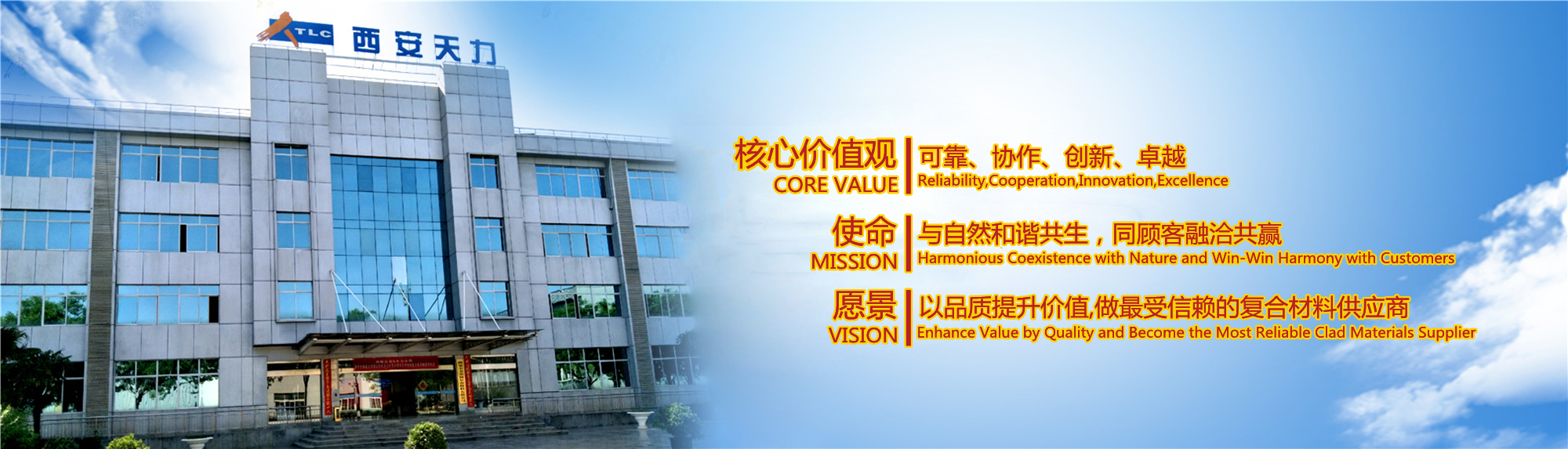 西安天力金屬?gòu)?fù)合材料股份有限公司是西北有色金屬研究院(集團(tuán))產(chǎn)業(yè)化上市公司“西部材料”控股的獨(dú)立法人公司,是專業(yè)從事層狀金屬?gòu)?fù)合材料研究及生產(chǎn)的高新技術(shù)企業(yè),成立于2003年12月25日,位于西安經(jīng)濟(jì)技術(shù)開發(fā)區(qū)涇渭工業(yè)園,注冊(cè)資本10895萬(wàn)股,擁有生產(chǎn)廠房23000余平米,各類生產(chǎn)設(shè)備200余臺(tái)套及兩塊條件優(yōu)越的爆炸復(fù)合場(chǎng)地,形成年產(chǎn)25000噸層狀復(fù)合材料的生產(chǎn)加工能力……
